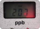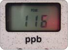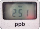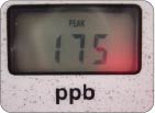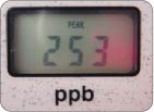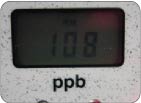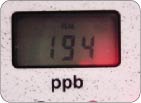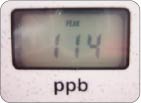 AM10:00+ 朝のハミガキ後 右写真:寝起きの測定後、ハミガキをした後もう一度測定。値が約3分の1まで低下!!落ち込んでいた被験者もほっと一安心です。朝のハミガキがどれほど重要かがあらためて分かります。 |